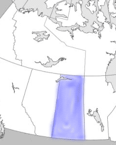 and 102º W and 110º W, bordered by Manitoba and Alberta. It
